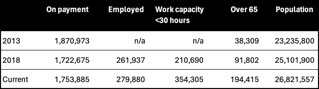 - The proportion of people under 65 receiving these payments has fallen by 26% (from 7.89% of the population in 2013 to 5.81% today).