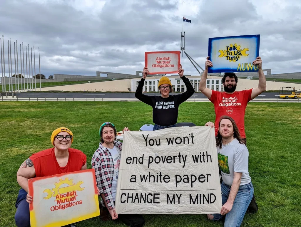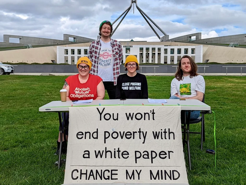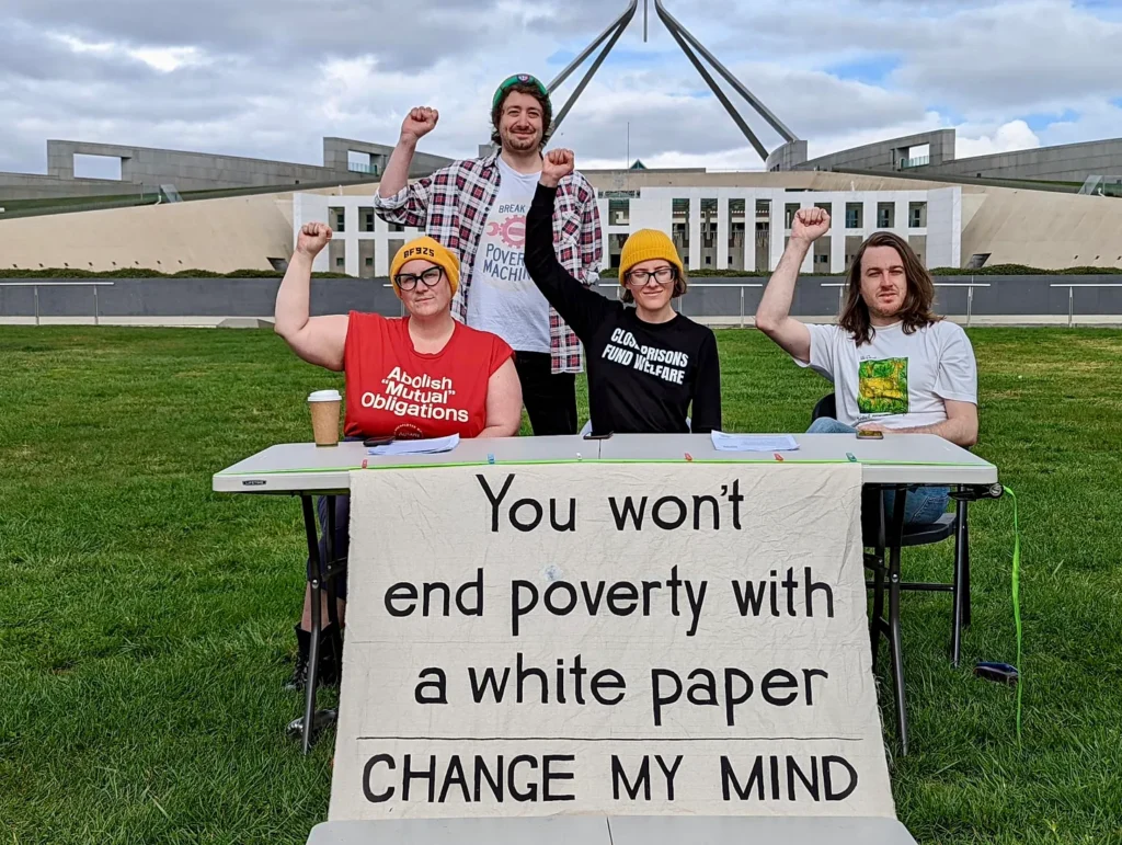 Today a small group of unemployed advocates from the Antipoverty Centre and Australian Unemployed Workers’ Union gathered outside Parliament House in an effort to ensure people not benefitting from the tight labour market could share their response to the government’s Jobs and Skills Summit. The government did not include unemployed people as full participants in its event.